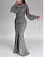 Corte Trompeta / Sirena Cola de Corte Trajes de gala Vestidos de noche Corte Cenicienta Vestimenta formal Elegante Lentejuelas Split High Manga Larga Joya Invitado a la boda Lazo negro Satén con