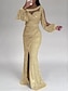Funda / Columna Cola de Corte Hasta el Suelo Trajes de gala Vestidos de noche Corte Cenicienta Vestimenta formal Elegante Reluciente Estilo de Celebridad Manga Larga Escote Cuadrado Formal Boda Crep