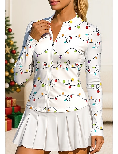 Navidad Mujer Luces de Navidad Tops Camisa deportiva Camiseta de tenis Top de tenis Manga Larga Cremallera UPF50+ Resistente a los rayos UV Alta elasticidad Dispersor de humedad Transpirable Voleibol product tag