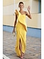 Mono Hasta el Suelo Vestido de Madrina Manga Larga Un Hombro Elegante Sencillo Invitado a la boda Noche formal Tejido elástico con Flor Un Color