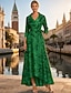 Corte A Hasta el Tobillo Vestido Invitada Boda Vestido formal Vestido de noche Vestido de Madrina Manga Larga Escote en Pico Diseño Elegante Vintage Formal Invitado a la boda Nailon con Lazo(s) Con