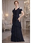 Corte A Hasta el Suelo Vestido Invitada Boda Vestido Escalonado Vestido de noche Vestido de Madrina Manga Corta Cuello vuelto holgado Elegante Formal Invitado a la boda Semi-formal Gasa con Volantes