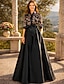 Corte A Hasta el Suelo Vestido Invitada Boda Vestido formal Vestido de noche Vestido de Madrina Manga Larga Cuello Camisero Elegante Sencillo Minimalista Formal Invitado a la boda Encaje Satén