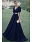 Corte A Vestidos Hasta el Suelo Vestido Invitada Boda Vestido de noche Vestido de Madrina Manga Corta Escote en Pico Elegante Sencillo Casual Formal Invitado a la boda El derby de Kentucky Gasa Chales