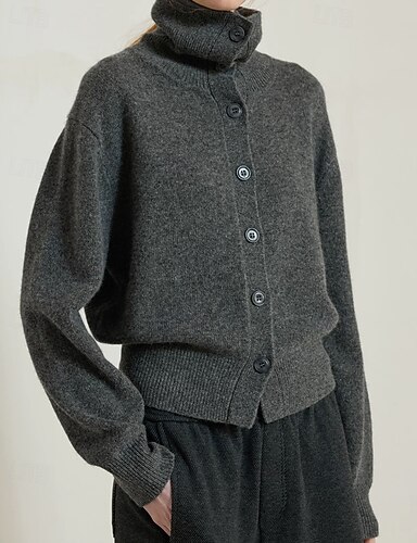 Mujer Pulóveres Cárdigan Vintage Moda Ropa de calle Color sólido Cuello Alto De Punto Manga Larga Tops regulares Tejer Diario Festivos Noche Gris Otoño Invierno