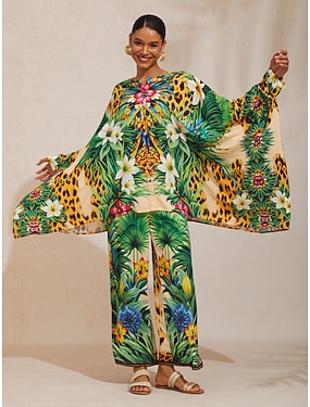 Mujer Camiseta Estampado Graphic Animal Vintage Elegante Clásico Manga Corta Cuello Barco Escote Redondo Tops regulares Diario Fin de semana Amarillo Verde Claro Arco Iris Verano Primavera Otoño