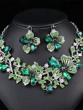 Juego de Joyas 2 Verde Diamantes Sintéticos Legierung 1 Collar Pendientes Mujer Elegante Vintage Moda Estilo retro Clásico Conjunto de joyas Para Boda Fiesta San Valentín