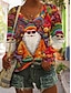Navidad Mujer Camiseta Graphic Papá Noel Navidad Vintage Elegante Clásico Manga Larga Escote en Pico Tops regulares Diario Estampado Rojo Primavera Otoño Invierno