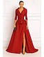 Corte A Vestidos de noche Elegante Vestido formal Formal Boda Cola de Corte Manga 3/4 Escote en Pico Satén elástico con Lazo(s) 2025