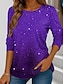 Camiseta de mujer estilo Henley blusa básica con botones estampado manga de 3/4 tops regulares cuello redondo casual fin de semana blanco rosa rojo azul verde