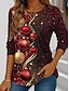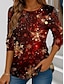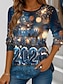 Año Nuevo Mujer Camiseta Estampado Graphic Moda Moderno Manga Larga Cuello Barco Escote Redondo Tops regulares Diario Fin de semana Azul Piscina Negro Vino Rojo Azul Real Otoño Invierno