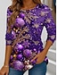 Mujer Camiseta Tee Camiseta superior Estampado Graphic Moda Elegante Manga Larga Escote Redondo Tops regulares Diario Noche Fin de semana Morado Primavera Otoño
