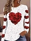 día de San Valentín Mujer Camiseta Estampado Corazón Graphic Moda Elegante Clásico Manga Larga Cuello Barco Escote Redondo Tops regulares Diario Fin de semana Blanco Rojo Verano Primavera Otoño