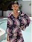 Mujer Vestido informal vestido largo vestido largo Marrón Manga 3/4 Geométrico Estampado Verano Otoño Temporadas Cruzadas Escote en Pico Cuello Camisero Vacaciones Bohemio XS S M