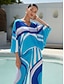 Mujer Vestido Kaftan Vestido Estampado Vestido a media pierna Vestido Midi Azul Piscina Mangas medias Flor / Plantas Estampado Primavera verano Escote en Pico Estilo playero Playa XS S M