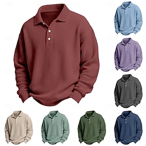 Hombre Camisetas polo con diseño de gofre Camiseta de golf Deporte Casual Diseño Manga Larga Ropa de calle Fresco Plano Estilo clásico Con Texturas Otoño Primavera & Otoño Ajuste regular Albaricoque