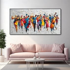 Gran arte de pared pintado a mano pintura de banda de música de jazz pintura al óleo abstracta sobre lienzo arte contemporáneo moderno decoración del hogar listo para colgar o lienzo