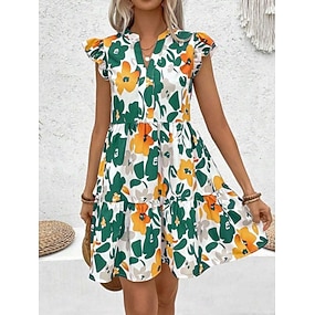 Mujer Mini vestido Vestido de una línea Vestido de flores Vestido bohemio Elegante Moda Moderno Diario Exterior Vacaciones Ajuste regular Floral Sin Mangas Escote en Pico Azul Piscina Negro Blanco