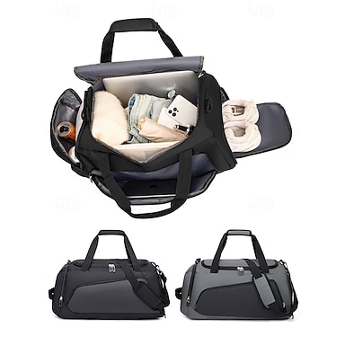 Bolsa de lona de nailon de gran capacidad para hombre, color negro y gris, ideal para viajes, gimnasio o fines de semana. Correa de hombro ajustable, bolsa deportiva multiusos para viajes de negocios, fitness y viajes.
