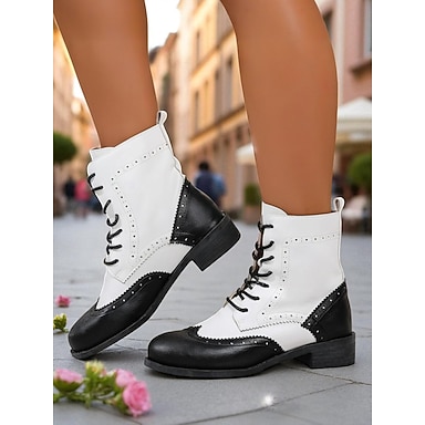 Botines brogue con cordones de piel sintética en blanco y negro vintage para mujer, de los años 50, perfectos para el estilo urbano y la ropa informal de oficina.