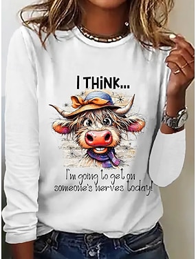 Mujer Camiseta Estampado Graphic Vaca Letra Vintage Moda Elegante Manga Corta Manga Larga Cuello Barco Escote Redondo Tops regulares Diario Fin de semana Negro Blanco Rosa Verde Trébol Verano