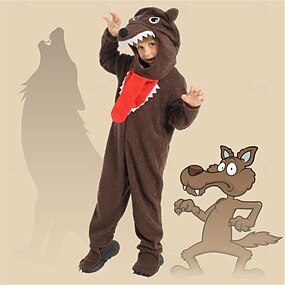Disfraz de carnaval Sudadera Pijamas Kigurumi Lobo Animal Cosplay Con Capucha Niños Unisexo Víspera de Todos los Santos Carnaval Rendimiento Disfraces educativos Disfrazarse