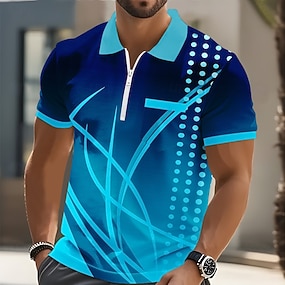 Hombre Geométrico Camisetas polo Manga Corta Camisas de polo Camisas con cuello Informal de negocios Exterior Ropa Deportiva Festivos Bolsillo Impresión 3D Polo con cremallera de un cuarto Primavera