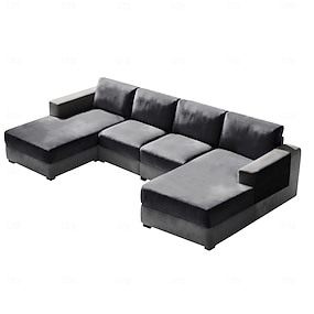 10 fundas de cojín para sofá seccional modular en forma de U con 4 asientos, 4 respaldos y 2 brazos, fundas tapizadas de terciopelo elástico para sofá cama con chaise longue doble profunda