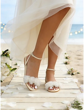 Zapatos de novia de encaje blanco con punta abierta y tiras en el tobillo: elegantes zapatos de boda para novias, románticas sandalias elegantes para ocasiones formales.