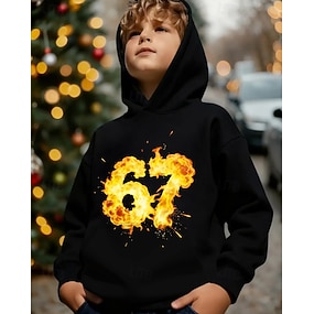 Unisexo 3D Graphic Jerga divertida 67 Sudadera Pullover Manga Larga Impresión 3D Primavera Otoño Deportes Moda Ropa de calle Niños 4-12 años Con Capucha Casual Diario Exterior Ajuste regular