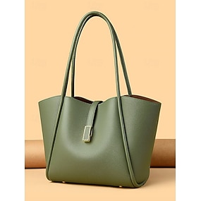 Bolso de mano de piel sintética verde para mujer, diseño sencillo, decoración con hebilla dorada: bolso de mano elegante y práctico para el trabajo, las compras y el uso diario, negro, blanco y rojo