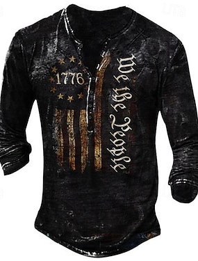 Camiseta gráfica patriótica Henley para hombres | 1776 Nosotros el pueblo impresión de la bandera americana | Declaración sobre el muro fronterizo | Diseño de todo eléctrico