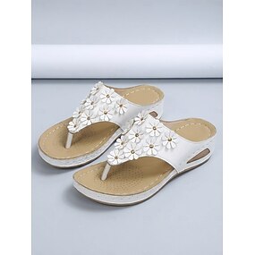 Sandalias blancas con tiras florales para mujer: zapatos de verano cómodos y decorativos para vacaciones, fiestas en el jardín, uso diario y salidas informales.
