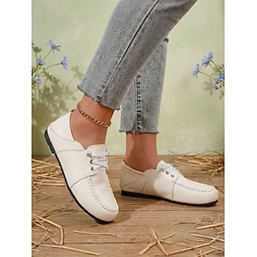 Zapatos planos casuales blancos para mujer: zapatos cómodos sin cordones para el trabajo y el uso diario.