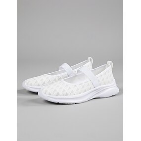 Zapatillas deportivas blancas de malla estilo Mary Jane para mujer: calzado ligero, transpirable y cómodo para caminar, con correa elástica, ideal para uso diario, viajes y trabajo.
