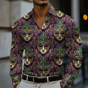 Camisa estampada de fiesta de Mardi Gras para hombre: clásica camisa de carnaval con botones.