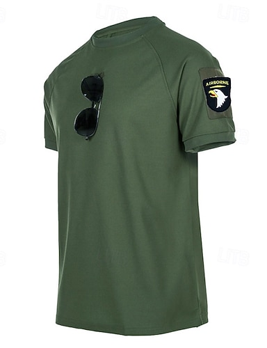 Hombre camisa cargo Camisa para senderismo Camisa del ejército Manga Corta Cuello Vuelto Camiseta Al aire libre Ligero Transpirable Verano Primavera Algodón Negro Verde Ejército Caqui Caza Pesca