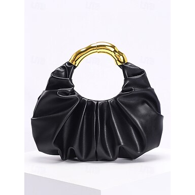 Bolso de mano fruncido de piel sintética para mujer con asa dorada, elegante estilo minimalista, opciones multicolor, elegante bolso de noche para invitadas a bodas, cócteles y eventos formales.