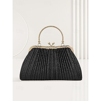 Bolso de noche plisado con purpurina para mujer con asa dorada vintage: elegante bolso formal para bodas, fiestas y cócteles.