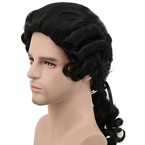 Peluca colonial para hombres peluca blanca larga de ondas peluca de disfraz de Washington pelucas de Halloween
