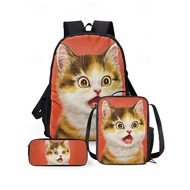 Conjunto de mochila de tres piezas con temática de gato para niños, que incluye mochila, bolsa térmica y estuche para lápices, perfecto para la escuela, viajes y uso diario, kayomi harai