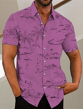 Hombre Palmera Mar Velero Camisa camisa hawaiana Manga Corta Camisa Cuello Cuello Americano Design Boho Estilo playero Diario Noche Rosa Azul Real Azul Piscina Otras impresiones S M L
