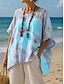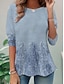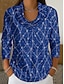Mujer Camiseta Camisa de lino sintético Camiseta superior Estampado Floral Tie-dye Moda Elegante Casual Manga 3/4 Cuello Barco Tops regulares Diario Noche Fin de semana Azul Piscina Rosa Azul