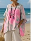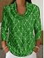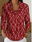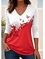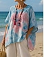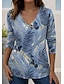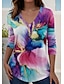 Camiseta de mujer T-shirt gráfico floral ombre elegante vintage estilosa manga 3/4 cuello en V tops regulares salida diaria botones azul rosa rojo verde verano primavera