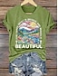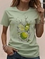 Mujer Camiseta Estampado Floral Elegante Clásico Casual Manga Corta Cuello Barco Escote Redondo Tops regulares Diario Blanco Verde Claro Verde Trébol Verano Primavera