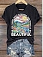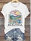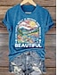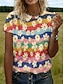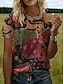 Mujer Camiseta Camiseta superior Estampado Floral Graphic Elegante Clásico Casual Manga Corta Cuello Barco Tops regulares Diario Noche Fin de semana Arco Iris Azul claro Verano Primavera