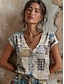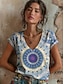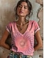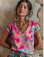 Mujer Camiseta Estampado Floral Graphic Abstracto Vintage Elegante Clásico Manga Corta Escote en Pico Tops largos Diario Azul Piscina Beige Claro Rosa Morado Verano Primavera