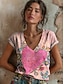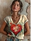 día de San Valentín Mujer Camiseta Estampado Corazón Floral Graphic Vintage Elegante Clásico Manga Corta Escote en Pico Tops regulares Diario Beige Claro Amarillo Rosa Verano Primavera