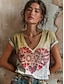 Mujer Camiseta Estampado Floral Graphic Vintage Elegante Clásico Manga Corta Escote en Pico Tops regulares Diario Ceniza Amarillo Naranja Rosa Brillante Verano Primavera