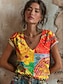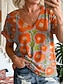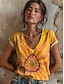 Mujer Camiseta Estampado Floral Graphic Vintage Elegante Clásico Manga Corta Escote en Pico Tops regulares Casual Diario Noche Amarillo Naranja Verde Trébol Verano Primavera